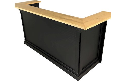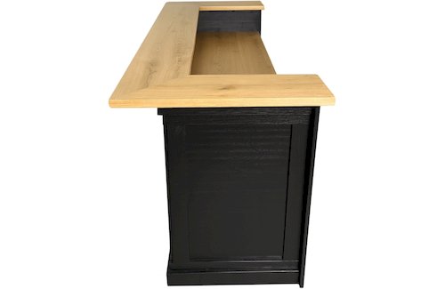 De zwarte body vormt een stijlvol contrast met het eikenhout en geeft de bar een robuuste, moderne look. Het werkblad is extra zwaar en dik uitgevoerd, zodat het niet doorbuigt en jarenlang stevig blijft. Daarnaast is de Bar Brazilië volledig demontabel, wat hem ideaal maakt om eenvoudig naar boven, beneden of naar een andere ruimte te verplaatsen.