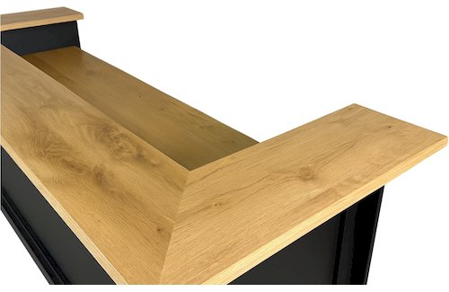 Het boven- en werkblad zijn gemaakt van massief oud eikenhout (Crack Oak). Dankzij de blanke lak blijft de natuurlijke houtstructuur prachtig zichtbaar, wat zorgt voor een warme, unieke en authentieke uitstraling. Geen enkele bar is hetzelfde – elke tekening in het hout maakt jouw bar écht uniek.