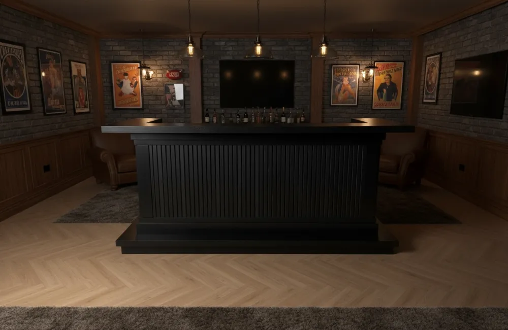 Woodpanelen geven de bar een luxe en robuuste uitstraling. Met de voetenbak onderaan krijgt de bar een stoere basis en staat hij extra stevig. Een dik kanon van een bar om het zo maar te zeggen. 💪