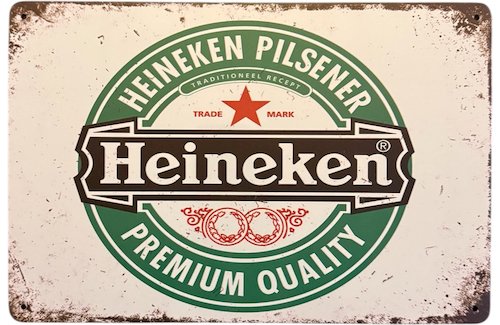 Geef je bar, keuken of mancave meteen sfeer met dit stoere metalen Heineken bord.