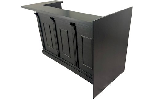 Deze hoekbar is gemaakt om tegen een muur te plaatsen.