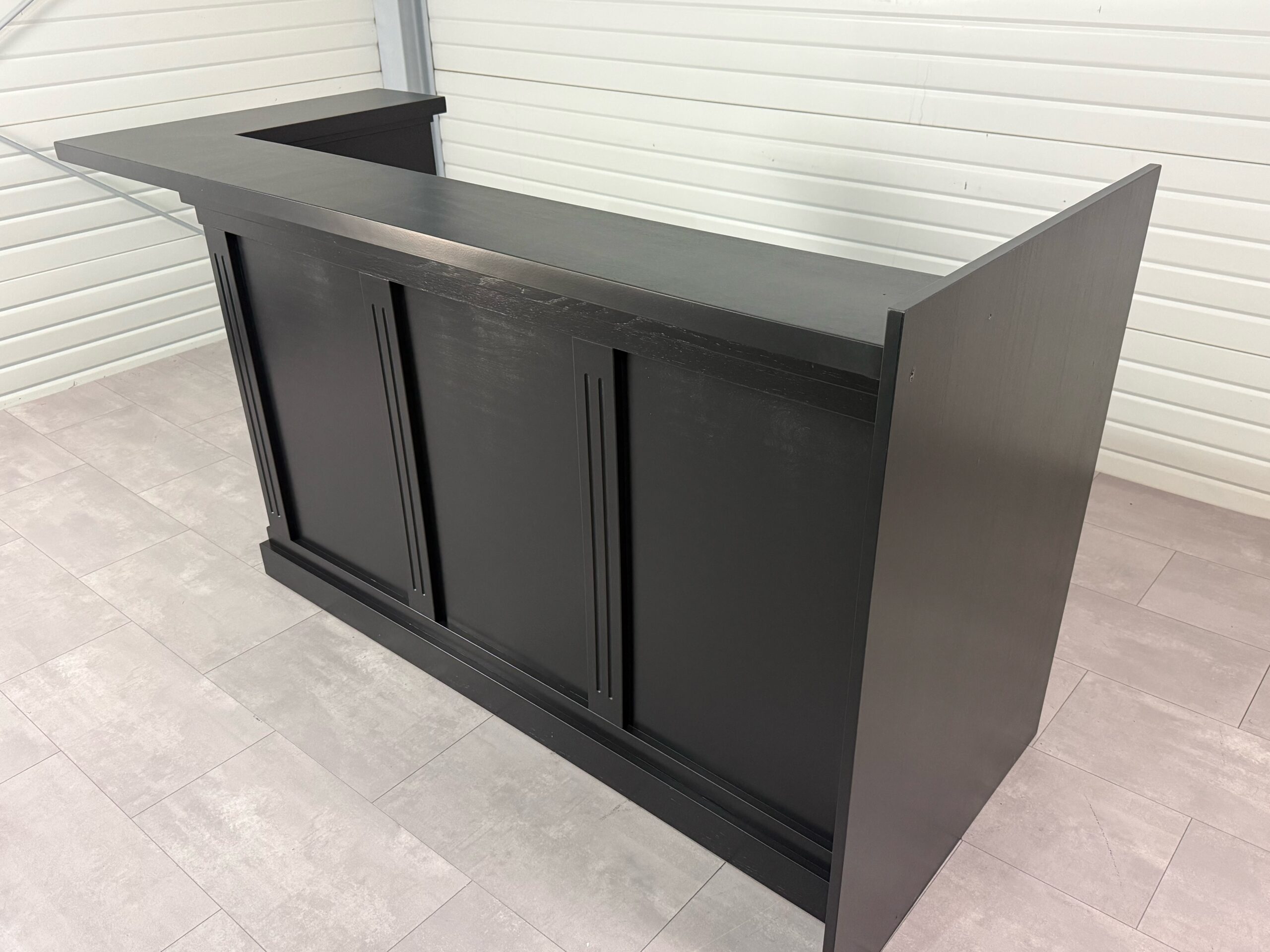 Dankzij het eindpaneel plaats je de bar strak tegen de muur, waardoor hij naadloos opgaat in de ruimte. Dit zorgt voor een rustige, strakke uitstraling. Niet voor niets wordt dit model ook wel een muurbar genoemd.