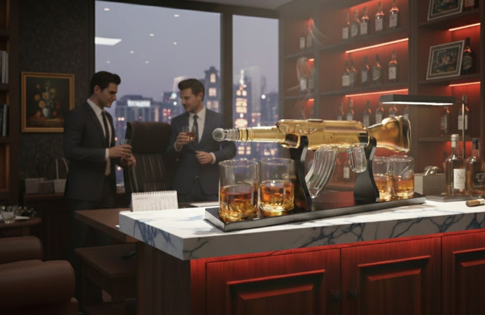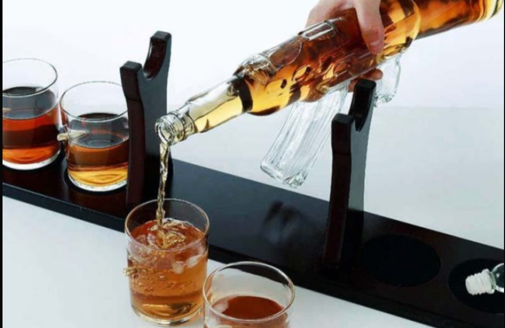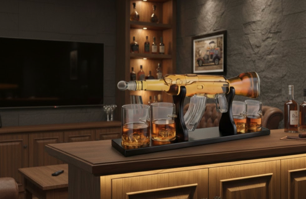 Geef je thuisbar, mancave, óf kantoor een opvallende en stijlvolle eyecatcher met deze whiskey karaf in de vorm van een AK47. Een uniek design dat direct in het oog springt en perfect past in een modern, industrieel of zakelijk interieur.